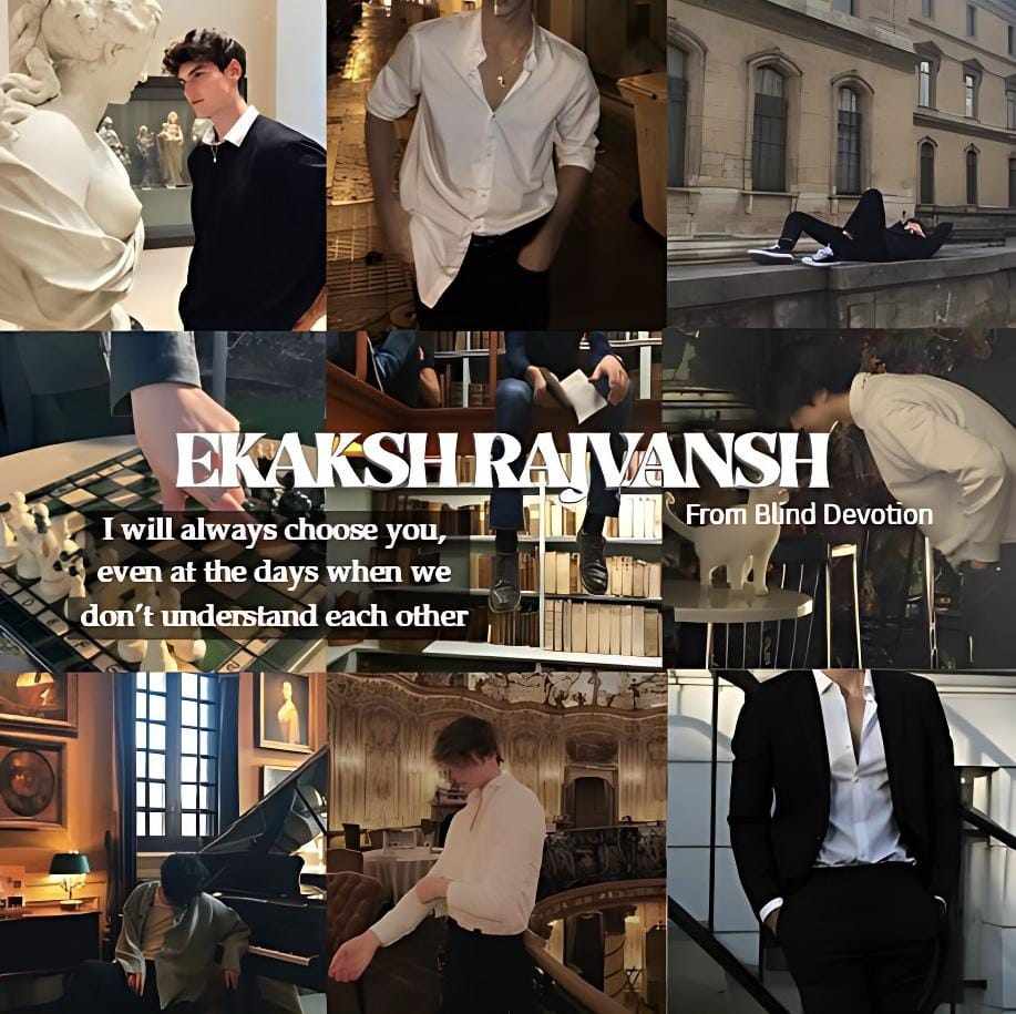 Ekaksh Rajvansh - Ekaksh Rajvansh is 25 years old introverted, calm and ambitious. As the CEO of the company, he carries an air of leadership and unwavering discipline, firmly believing that rules exist to be followed. He known for his relentless commitment to his work, Ekaksh has become one of the youngest and most respected businessmen in the industry. Though many girls see him as their Prince Charming, Ekaksh stays focused, untouched by their admiration. his dreams lie elsewhere hidden, intense and known to no one. his unwavering dedication to his goals leaves little space for love. Order, discipline, and responsibility define him, and he never lets personal distractions stand in his way.